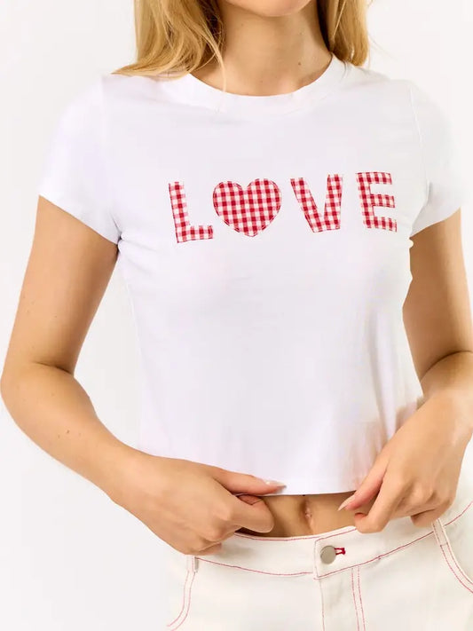 "Love" Gingham Cropped Tee