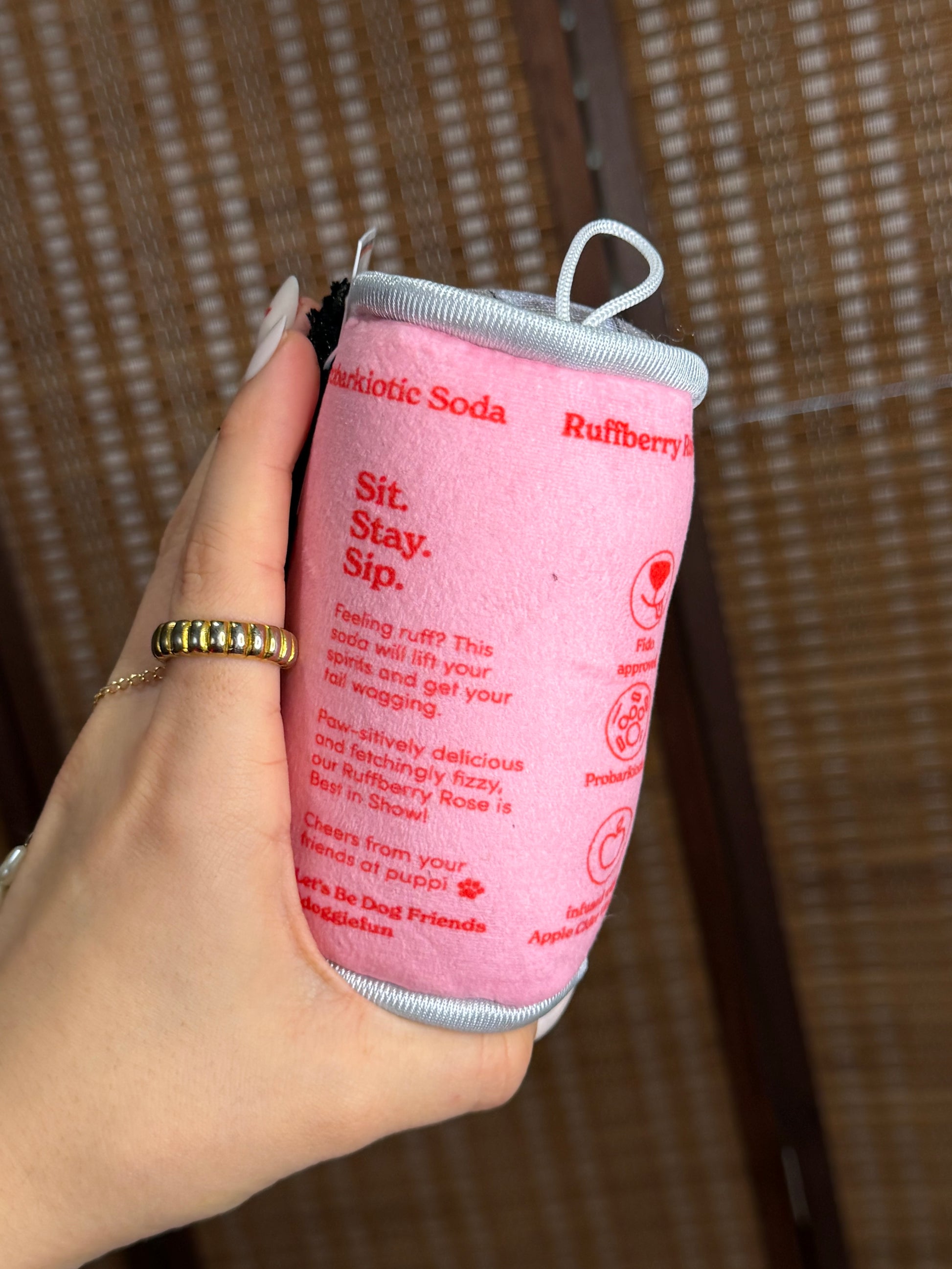 Because your dog deserves a fun little drink too✨ Soft Ruffberry rose can with a squeak that HITS. Poppi for you, Puppi for them.