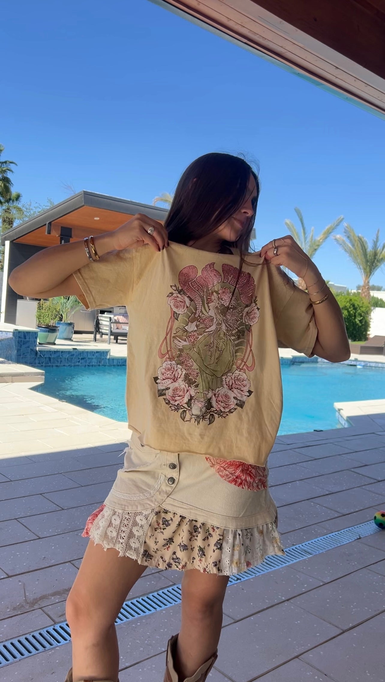 yellow w/ pink hits + a little sparkle. laid-back vintage feel, new favorite tee.